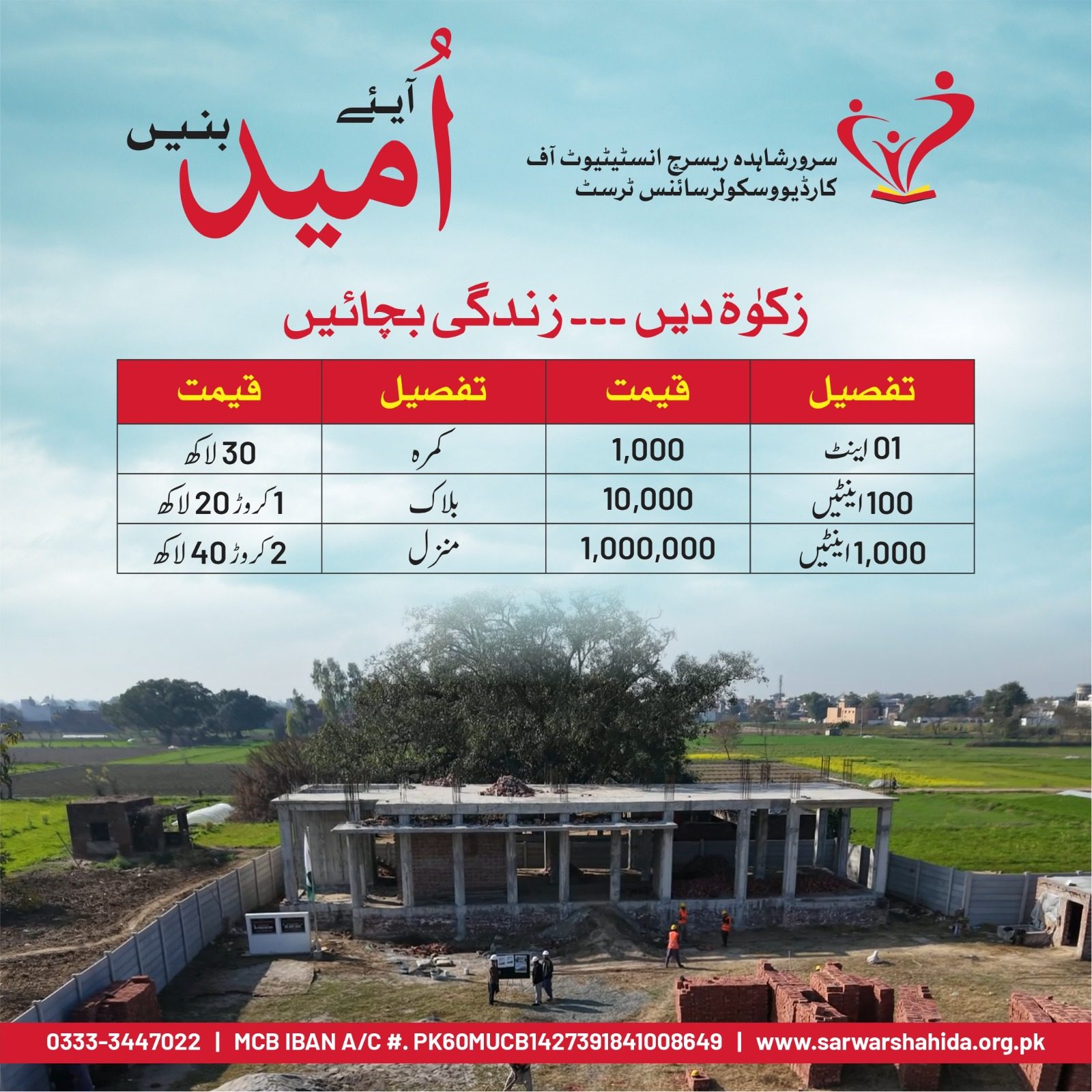بورڈ کی جانب سے پاکستان کی عوام سے اپیل کی گئی کہ وہ "زندگی کی اینٹ" کے ذریعے سرورشاہدہ ٹرسٹ کو دل کھول کر عطیات دیں تاکہ مستحق اور نادار مریضوں کو اچھا اور بروقت دل کا علاج میسر ہوسکے۔